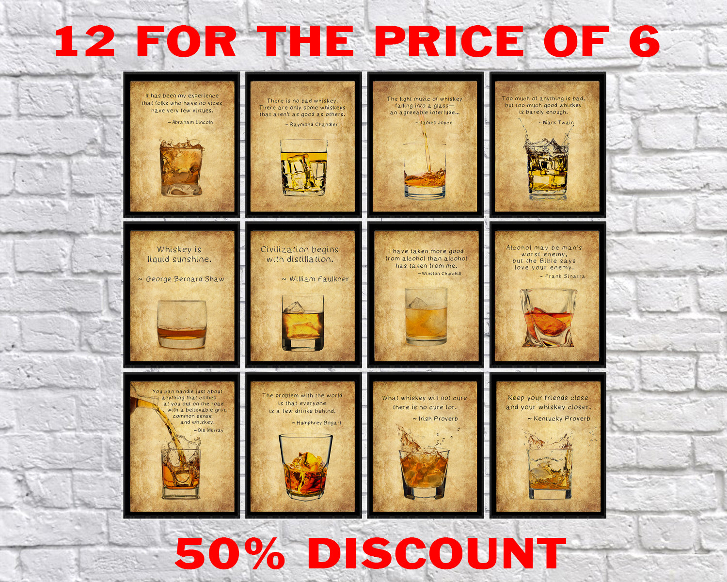 Whiskey Prints Discounted Set Of 12 Whiskey Quotes Whiskey Etsy